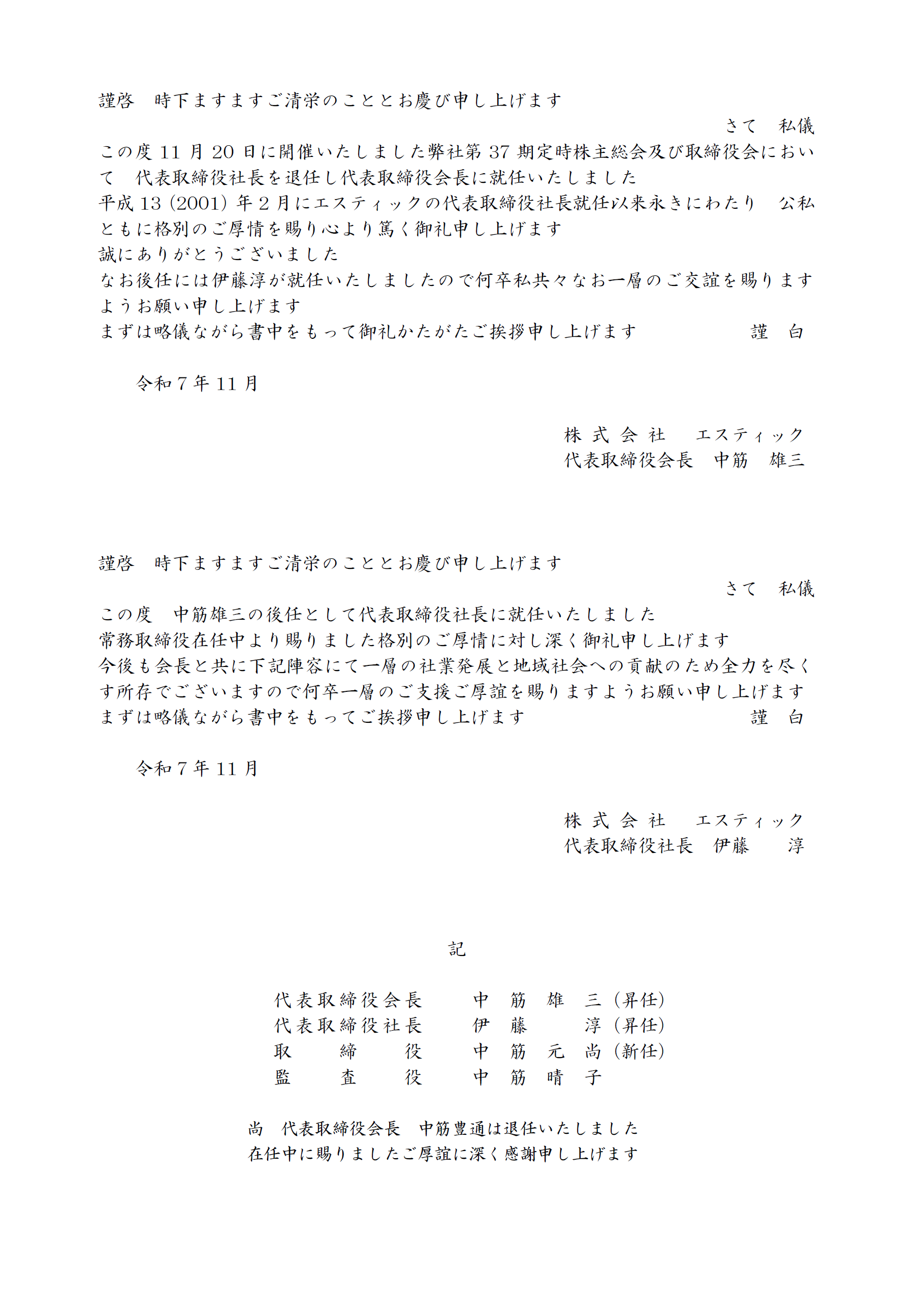 役員体制変更のお知らせ